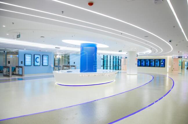 门诊大厅显著位置标注就诊绿色通道,所有通道无死角标志行走线路,环境整洁,干净利落,线条感十足,秩序井然,保证患者畅通就医。